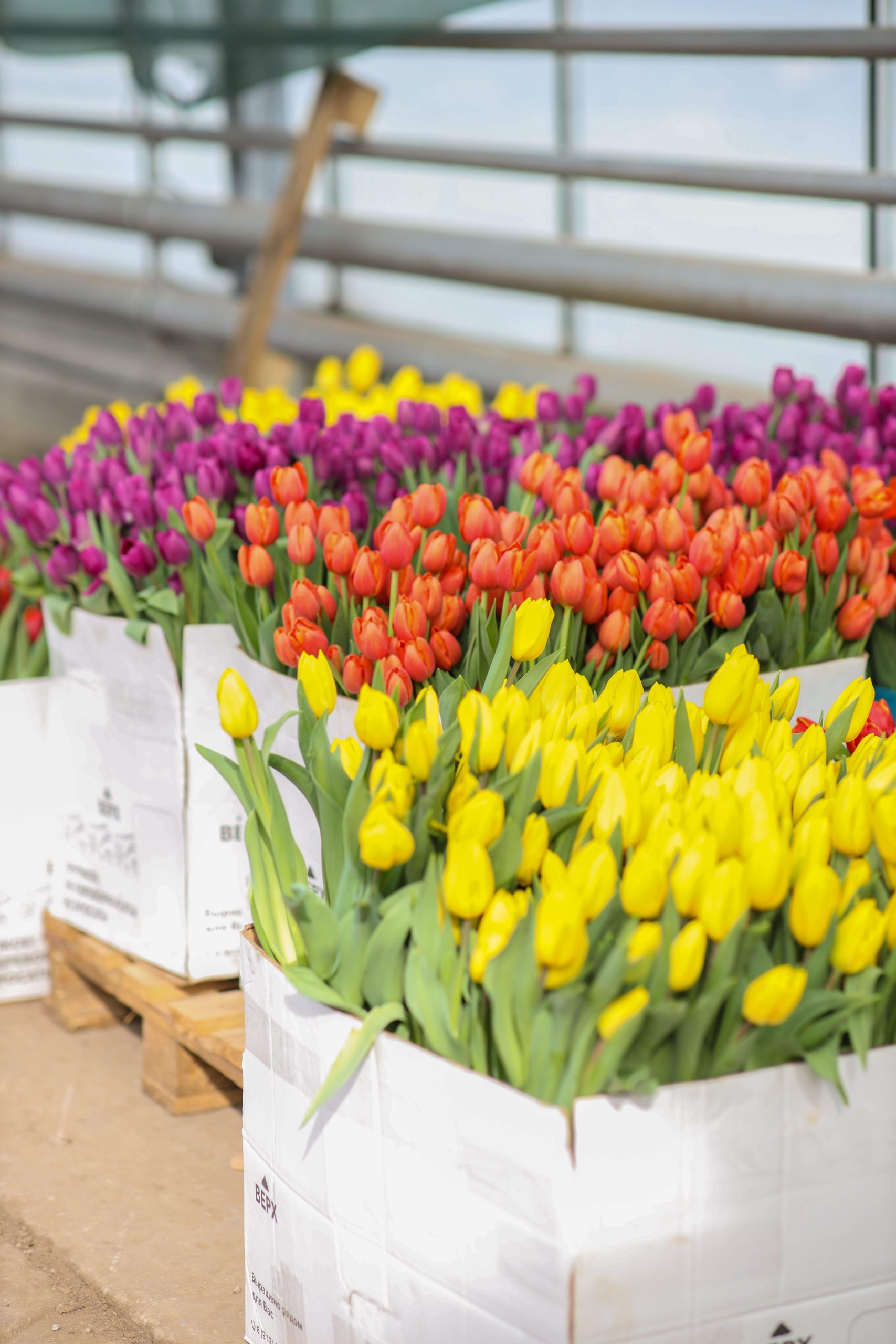 Тюльпаны упаковываются в картонные коробки вертикально – бутонами вверх. Дело в том, что цветок весьма светолюбив и светочувствителен, как подсолнух. Если он будет храниться горизонтально, то любой солнечный луч заставит гнуть его «голову». Тюльпан – выносливый путешественник, выдержит в дороге 2-3 недели. Из Крыма фуры с хрупким грузом отправляются в том числе в Архангельск, Мурманск, на Дальний Восток.